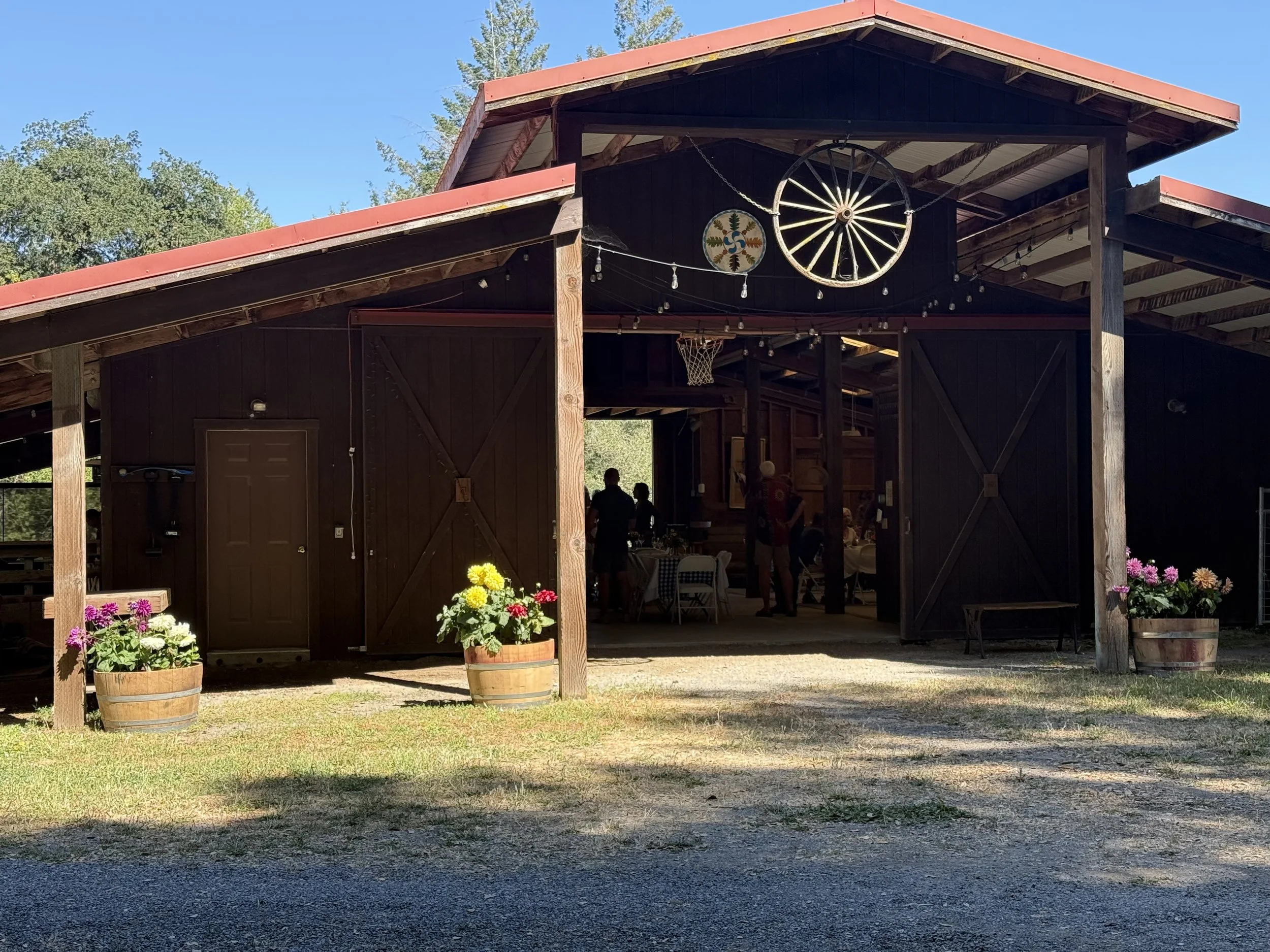The event facility is set in a lovely wooden barn on our beautiful rural property amid redwoods and oaks. It is located in the Russian River wine region, near the historic township of Occidental. The barn features an expansive light filled indoor/outdoor entertainment space.